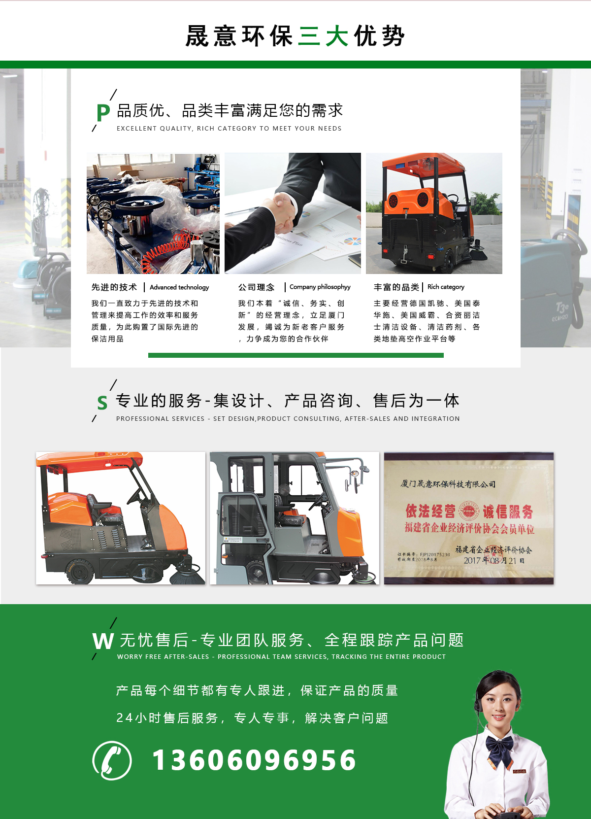 我司是2003年開始專業(yè)從事清潔設(shè)備銷售與石材護(hù)理保養(yǎng)服務(wù)為一體的綜合性公司。主要經(jīng)營德國凱馳、美國泰華施、美國威霸、合資麗潔士清潔設(shè)備、清潔藥劑、各類地墊、高空作業(yè)平臺等。供應(yīng)、酒店、大型工廠、物業(yè)等單位使用。目前我司服務(wù)的四、五星級酒店超過100家如艾美酒店、喜來登酒店、溫德姆、郎豪等國家國內(nèi)連鎖品牌。廈門國家電網(wǎng)、七匹狼、鴻星爾克等是我司常年保潔單位。銷售產(chǎn)品:廈門洗地機(jī)、廈門掃地機(jī)、廈門石材護(hù)理、保潔設(shè)備、...